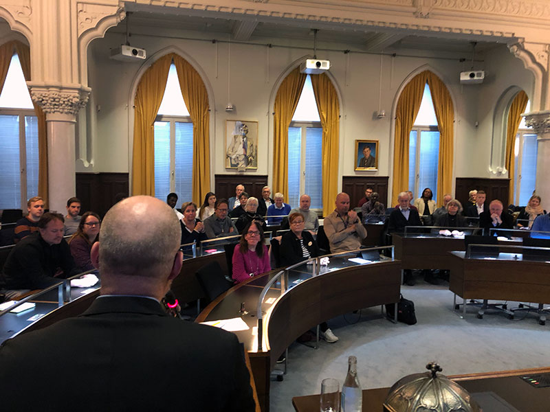 Liberaler från hela länet slöt upp och Örebro kommunförenings ordförande Magnus Riseby hälsade alla välkomna och inledde träffen i den vackra plenisalen i Örebro rådhus.